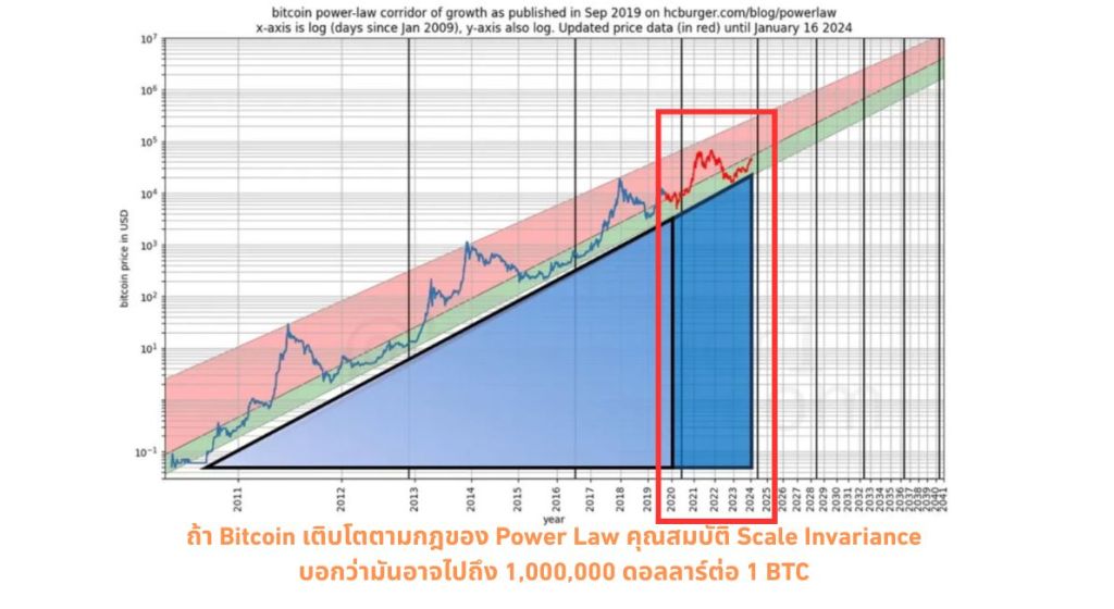 ซึ่งเป็นคุณสมบัติที่สำคัญ ถ้า Bitcoin โตตามกฎของ Power Law